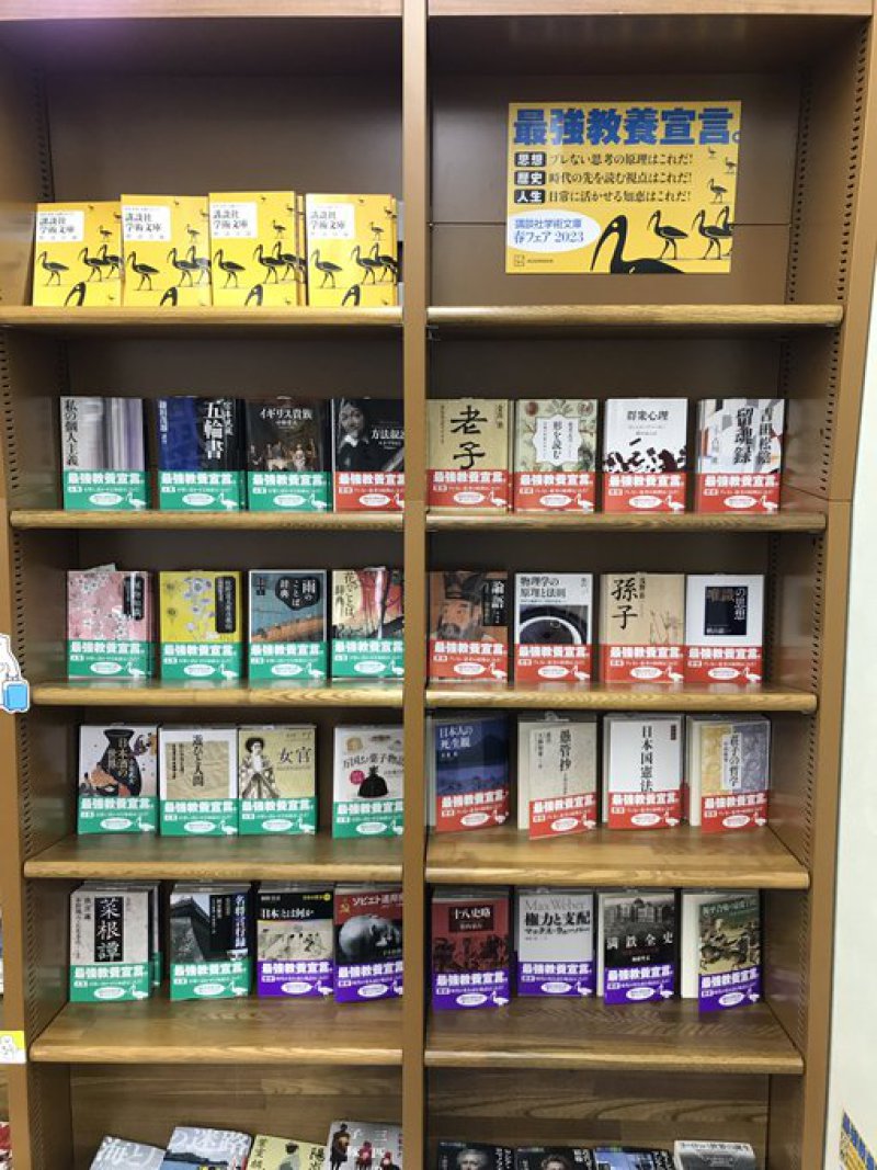 講談社学術文庫の春フェア『最強教養宣言』を開催中です。「歴史」「思想」「人生」の3つをテーマに、「古事記」や「論語」「雨のことば辞典」など「最強」のロングセラー商品が選ばれております。『学術』『教養』と聞くと難しく思われがちですが、お気軽にご覧ください。知的好奇心が満たされるかもしれません。