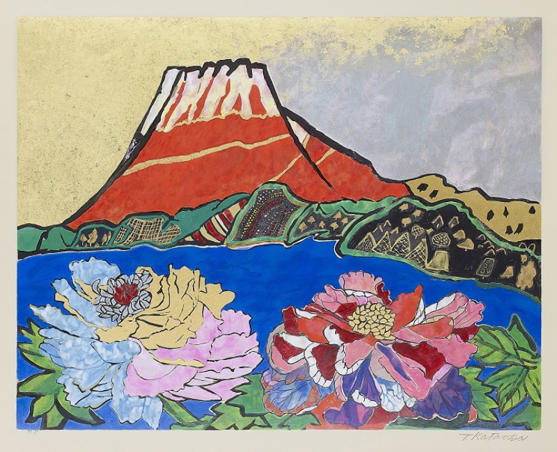 ※画像:片岡球子「牡丹咲く富士」リトグラフ
