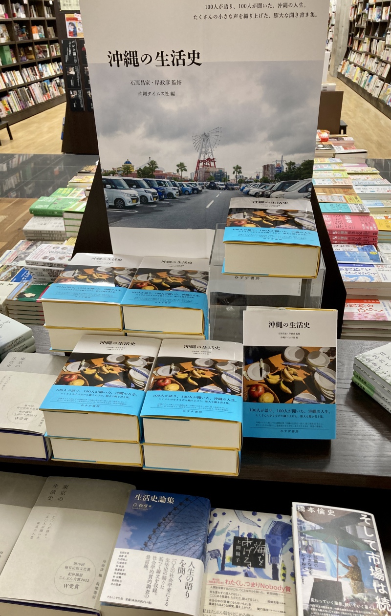 2022年5月に日本復帰50年を迎えた沖縄。これを節目として、沖縄の歴史とともに生きてきた人々の来し方を聞き取って文章に残そう、という沖縄タイムス社の企画が結実した一冊『沖縄の生活史』(みすず書房)が発売となりました。沖縄タイムス紙上での募集に応えた100名の「聞き手」たちが、それぞれ思い思いの100名の「語り手」を選び、その人生を聞き取って計100篇の生活史がまとめられた1冊です。ただいま、『沖縄の生活史』の発売を記念して、地下二階話題書コーナーにて、特設コーナーをご用意しております。沖縄の戦後を生きてきた人びとの、かけがえのない経験と記憶の語りが集まった、他に例のない貴重な証言集です。この機会にぜひご覧くださいませ。