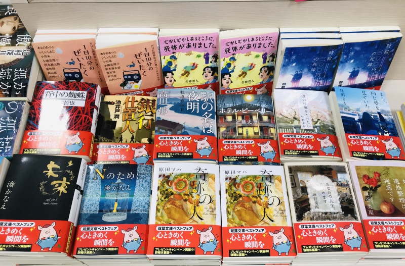 「浦島太郎」や「鶴の恩返し」といった日本昔ばなしを、密室やアリバイなどのミステリのテーマで読み解く「むかしむかしあるところに、死体がありました。」青柳碧人。NHKWORLD-JAPANのラジオ番組で17言語に翻訳されて放送された、人気作家8名の短編を収録。「1日10分のしあわせ」朝井リョウ他。双葉文庫の心ときめく売れ筋タイトルを厳選したフェアを開催中。この機会にお気に入りの1冊を探してみて下さい。レジ前話題書コーナーにて。