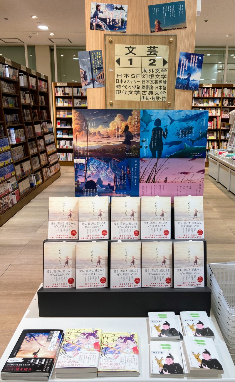枕草子、万葉集、古今和歌集などの古の言葉たちを「いまを生きる私たちの感覚」に合わせて“エモ訳“した上で、イラストによって視覚化した新感覚エッセイ「いとエモし。」。超美麗イラストのパネルとポストカードを飾ったフェア始めました!関連書籍も集めています。「エモい」を入口に、古典の世界に触れてみませんか?レジ前文芸書エンド台で展開中です。