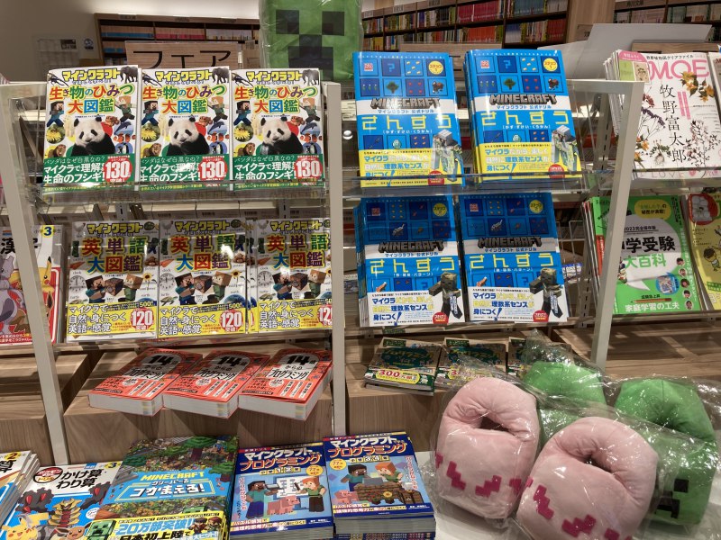 大人気ゲーム「マインクラフト」でお勉強ができる本を集めてみました。プログラミング、英語、さんすう、生き物のひみつなど、色々な科目をマイクラの世界で楽しみながら学べます!どの本にも人気のキャラクターやアイテムがたくさん登場していますよ。ワクワク楽しいお勉強時間になること間違いなし!ポップアップコーナーではマイクラグッズも販売中です!