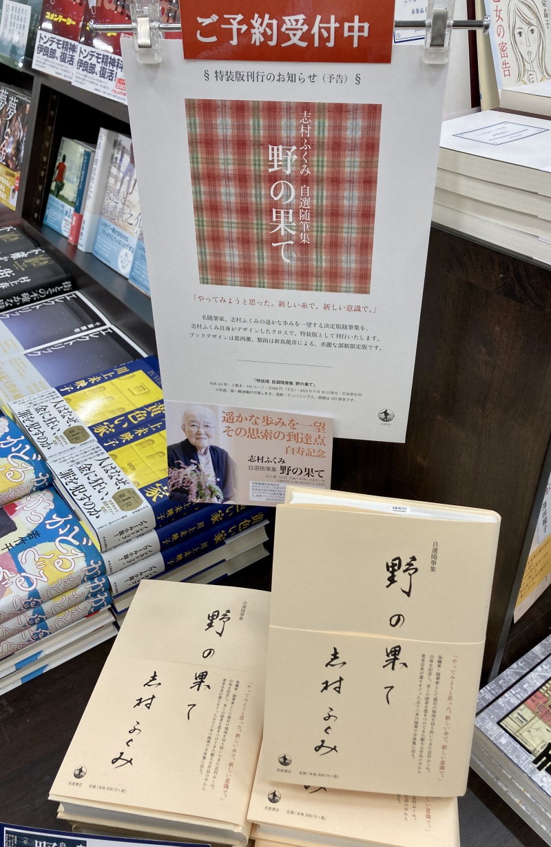 『野の果て』刊行記念パネル展は6月末まで開催予定です。また、志村ふくみさん自身がデザインされたクロスによる『特装版 自選随筆集 野の果て』が9月に刊行予定です。美麗な部数限定版ですので、ご予約受付中です。こちらもぜひご注目ください。