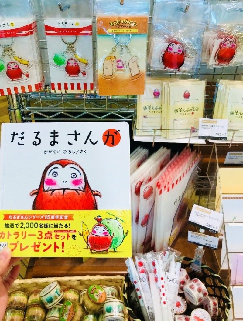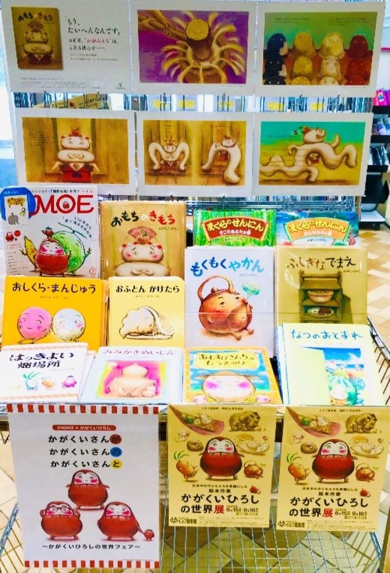 絵本作家かがくいひろしの展覧会『かがくいひろしの世界展』が、岡谷市イルフ童画館で開催中です。それに併せて、当店ではかがくいひろしさんの絵本と可愛いグッズを展開中です。かがくいひろしさんは50歳で絵本作家としてデビューし、16作品を次々と描きあげ、残念ながら54歳で世を去りました。短い期間で多くの作品を残しましたが、どれ一つ絶版になることなく、今も読み継がれています。大人気「だるまさんシリーズ」をはじめ、どれも読めば思わず笑みがこぼれる、ユーモアたっぷりの絵本たち。まだ読んだことがない人は、展覧会が長野県岡谷市で開催されている今こそ、読んでみてはいかがでしょうか。2階児童書棚にて展開中。