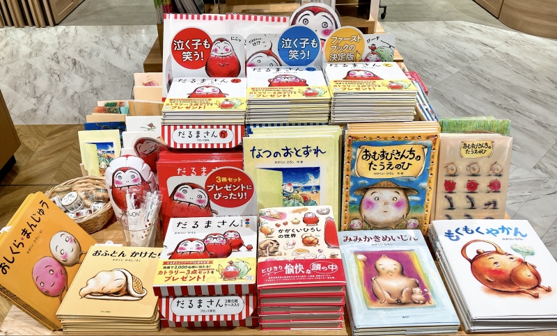 日本中の子どもたちを笑顔にした絵本作家・かがくいひろしさん。50歳で絵本作家デビューしてから病気で急逝されるまでわずか4年間に生み出された絵本はなんと16冊。「だるまさんが」シリーズをはじめとする絵本のアイデアは、特別支援学級の教師時代の経験から生まれたものだそうです。今回、大人も楽しめる絵本とグッズの空間EHONSと、かがくいひろしさんがコラボレーション!アクリルキーホルダー・クリアファイル・ポストカードなどが当店にも入荷いたしました。とてもかわいいのでぜひ手にとってみてください。一緒にフェア展開している絵本とセットでプレゼントするのもおすすめですよ!