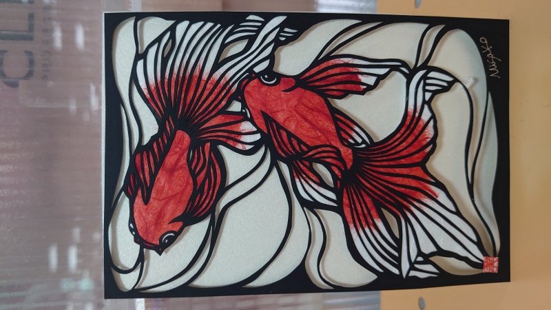 「きりえ工房彩花」は、オリジナルの下絵を一枚ずつ切り抜いてから、色和紙を1色1色貼って仕上げていきます。ナイフで黒い紙を切り抜き、切り抜いた黒い和紙に裏から彩色の和紙を貼り付け奥行を出していくオリジナル技法。ランプやキーホルダー、栞などに加え、オーダーによるオリジナル切り絵の制作も承ります。Twitter:@kirie_saika