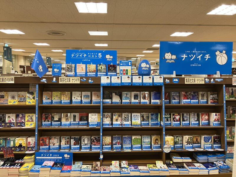 この夏、一冊分おおきくなろう。集英社文庫の「ナツイチ 2023」。毎年恒例の夏の文庫フェアです。この中の一冊を読み終えたときには、ひと回りおおきくなっているような、特別な一冊と出会えればいいな。スマートフォンを少し横に置いて、知的な一服も素敵じゃないか。先着でスマートフォンにも使えるクリーナー(全4色)をプレゼント中です。「ナツイチ 2023」はレジ前のフェア棚にて展開しております。ご来店の際にはぜひお立ち寄りくださいませ。