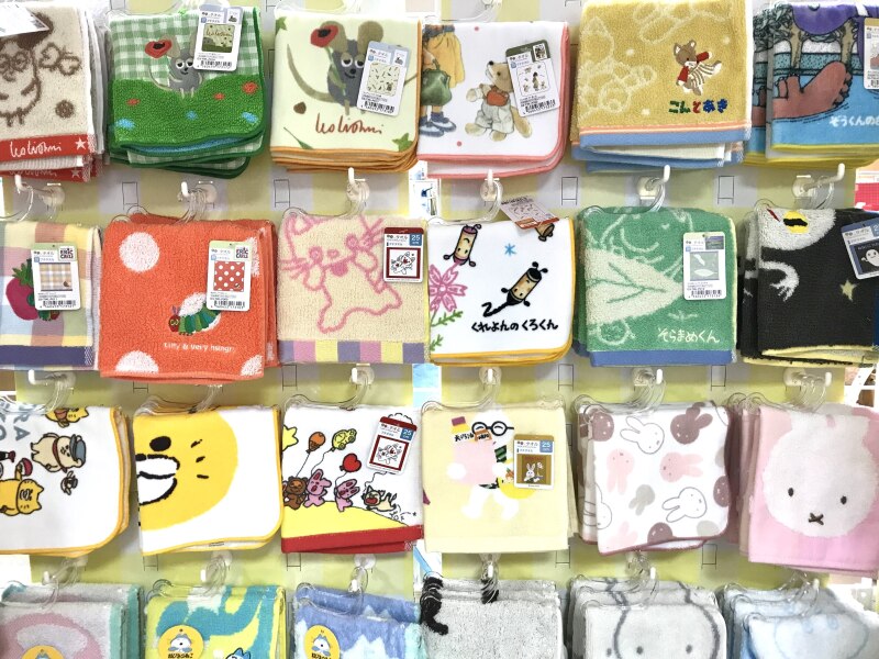 エリック・カールならではの豊かな色彩の「はらぺこあおむし」、発売から30年以上も愛され続けているドキドキ冒険旅ものがたり「こんとあき」、読者が二代目、三代目ともなる大人気シリーズ「ノンタン」など、ベストセラー絵本のキャラクターミニタオルがMARUZENに揃っています。素材も吸水性に優れたパイル生地タイプ、絵柄のプリントがきれいなマイクロファイバータイプ、ふんわり優しい手触りの表ガーゼ生地タイプなど種類があり、それぞれ絵本の図柄がタオルデザインとして活きる作りになっています。価格は税込み550円~770円(少し大きめサイズで税込み880円)。手を洗う時や汗をふいたりとミニタオルはお出かけ時にも重宝するアイテムです。お気に入りを見つけて、快適でご機嫌な毎日をどうぞ。場所は、中央エスカレーター上り側、コミックと文具の間の通路沿いで階段寄りの方にフェアコーナーを設けています。