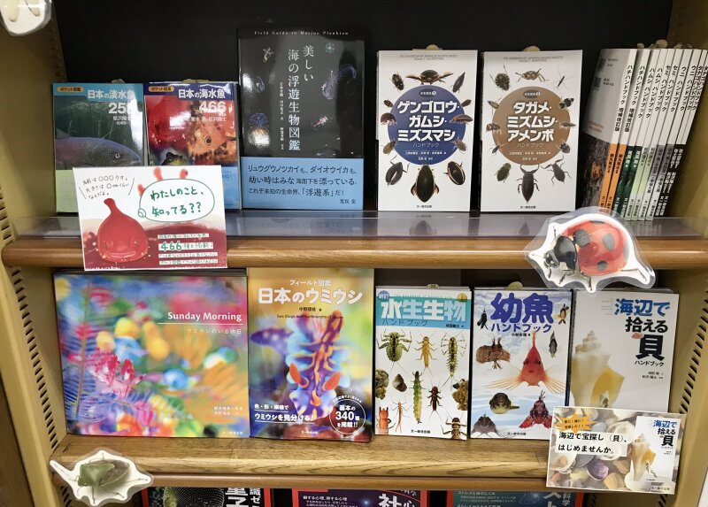 生きものを知るともっと楽しい!海や川、山で出会う魚や貝、昆虫の観察が楽しくなる「寄り道・散策・観察フェア」を開催中です。姿形だけではなく鳴き声から調べる昆虫図鑑もございます♪見て聞いて触って、この夏は生きもの探索へ出かけてみませんか?夏休みの自由研究にもおすすめです。自然科学書通路側フェアコーナーにて開催中ですのでぜひお立ち寄りください。