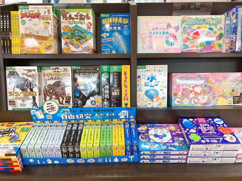 自由研究のキットと参考図書を展開しております。お菓子のような色とりどりのキットや、遊ぶ感覚でわくわくしながら楽しく学べるキットなどがございます。生物の生息場所や自然科学の成り立ちを自分の手で組み立てて作り出せることに胸が躍り、身近にあるもので実験はできるのだと気付きを得られます。お子様とご一緒に大人も楽しめますので、是非ご家族でお選びになってみて下さい。