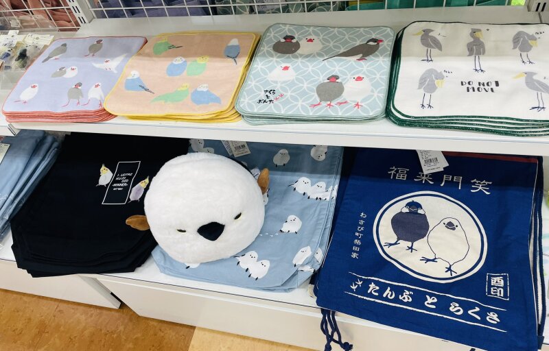 東京上野の「ことりカフェ」がプロデュースしている人気の小鳥グッズがやってきました。文具、ポストカード・ぬいぐるみからアクセサリーやバッグ・Tシャツなど幅広く取り揃えています。シマエナガ・インコ・ハシビロコウ・・・たくさんの鳥グッズが皆様のお越しをお待ちしております。鳥好きのお客様、ぜひ丸善博多店の文具売り場へ。ふわふわで色とりどり。可愛いです。