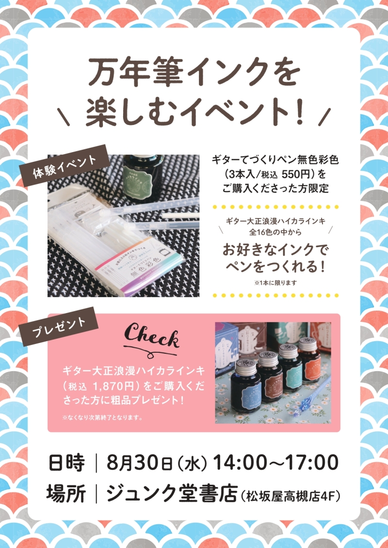 8月30日(水)14:00~17:00に万年筆インクイベントを開催します!去年も好評を博したイベントの第二弾になります!