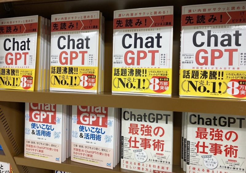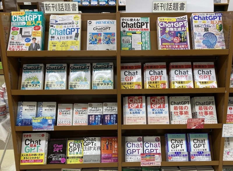 今話題のAI、ChatGPT。テキストベースのコミュニケーションを通じてユーザーの質問に回答し、情報を提供するAIです。ChatGPTによってわたしたちの生活や仕事、勉強にどんな変化が生まれるのでしょうか?どうやって活用していくのか?どのような問題点があるのか?そもそもAIって何?そんな疑問にこたえる書籍を、地下一階新刊話題所コーナーにて展開中です。入門書から活用、使いこなしのための書籍まで多数取り揃えております。ぜひお立ち寄りくださいませ!