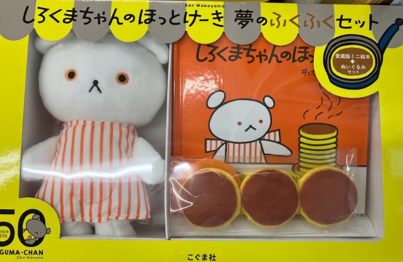 森永製菓さんと夢のコラボも果たした『しろくまちゃんのほっとけーき』を含め、『こぐまちゃん』シリーズは1970年に誕生以降、多くのこどもたちに愛されてきました。ホットケーキミックスは販売しておりませんが、『こぐまちゃん』の絵本を集めました。しろくまちゃんと小さなホットケーキのぬいぐるみがついた『しろくまちゃんのほっとけーき 夢のふくふくセット』はプレゼントにも、懐かしさを感じる大人へのご褒美にもおすすめです。