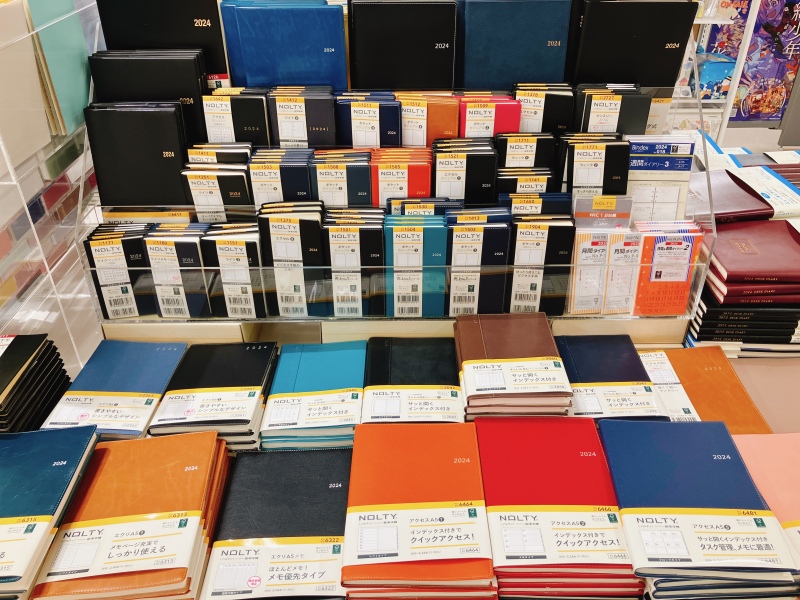 2024年手帳・ダイアリーフェア開催中。高橋書店のビジネス手帳、能率協会のNOLTY・PAGEM、博文館の各メーカーはもちろん、持っていると毎日が楽しくなるような、かわいいキャラクター手帳まで、多彩に取り揃えました。新しく楽しい予定や、大切な仕事の計画を書き込みたいですね。季節品につき、数量に限りがございます。お早めの御来店をお待ちしております。レジ横コーナーにて展開中です。