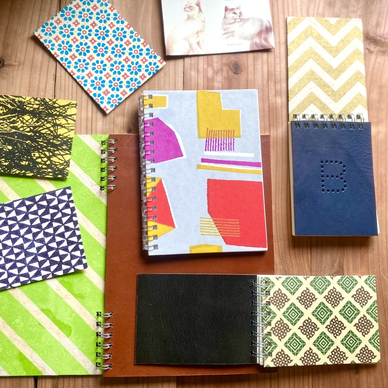 一枚革の表紙とお好きな模様の裏表紙を挟んでオリジナルのリングノートを作ります。手書きライフログに、インクジャーナルに。秘蔵の旧トモエリバーをたっぷり160ページ使用!A7メモ、A6ミニノートはツイストリングと互換性あり、A5はLIMEX®︎特製下敷付き。「スナップペンホルダー」との相性も抜群です。