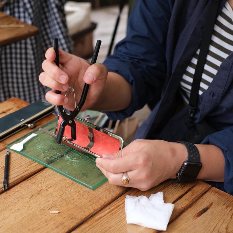 一期一会の革・ゴム・ステッチを組み合わせ、主力の2~3本だけをスリムに持ち歩く、自分だけの本革ペンがまを作りましょう。がまぐち専用工具の使い方も丁寧にレクチャーする、人気のワークショップです。