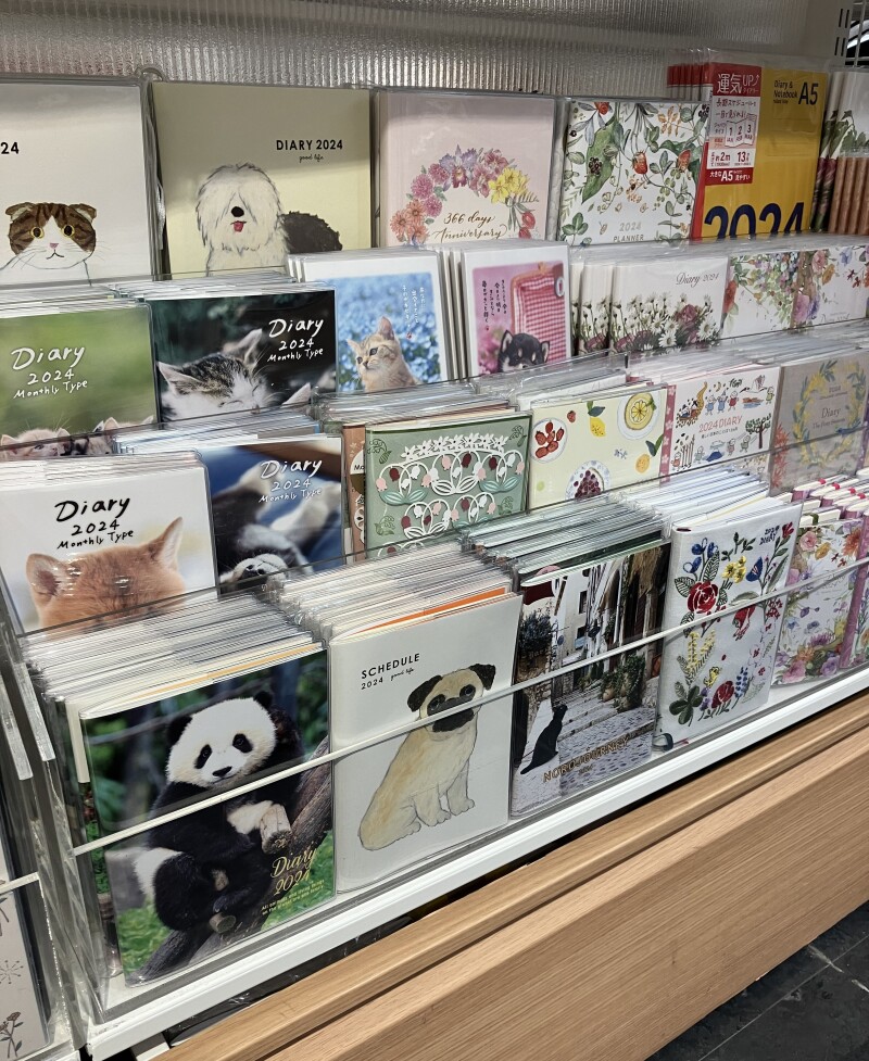 2024年版ダイアリーフェアを開催中です!高橋書店や日本能率協会、ダイゴー、博文館書店などのビジネス手帳はもちろん、可愛い動物やキャラクター、きれいなお花柄といったカジュアルな手帳まで、種類豊富に取り揃えてご用意しております。ぜひ当店のダイアリーフェアにお越しいただいて、お気に入りの1冊を見つけてみてはいかがでしょうか。季節品のため数に限りがございます。お早めのご来店をお待ちしております。