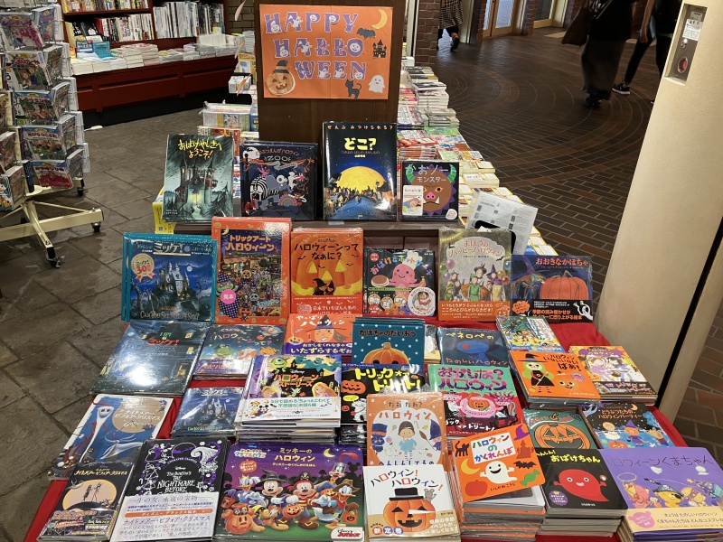 当店ではただいまハロウィンフェアを開催しています!この季節ならではのちょっとぞくぞくするお話や、かわいいおばけたちがたくさん登場するお話、そもそもハロウィンってどんなもの?などなど、皆様に楽しんでいただけるよう素敵な本をたくさんご用意しています。