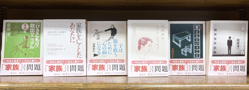 「家族」という関係を客観的に考える為のフェアです。精神科医、哲学者、臨床心理学者、教育者、エッセイスト、様々な視点から家族のあり方を見つめ直すことのできる書籍を集めました。家族とより良い関係を築く為の参考になります。寄り添い話を聴く時に、どういった反応や声がけをしてあげればいいか。正しく教え、時に厳しく見守るにはどう接すればいいかがわかります。是非ご覧下さいませ。