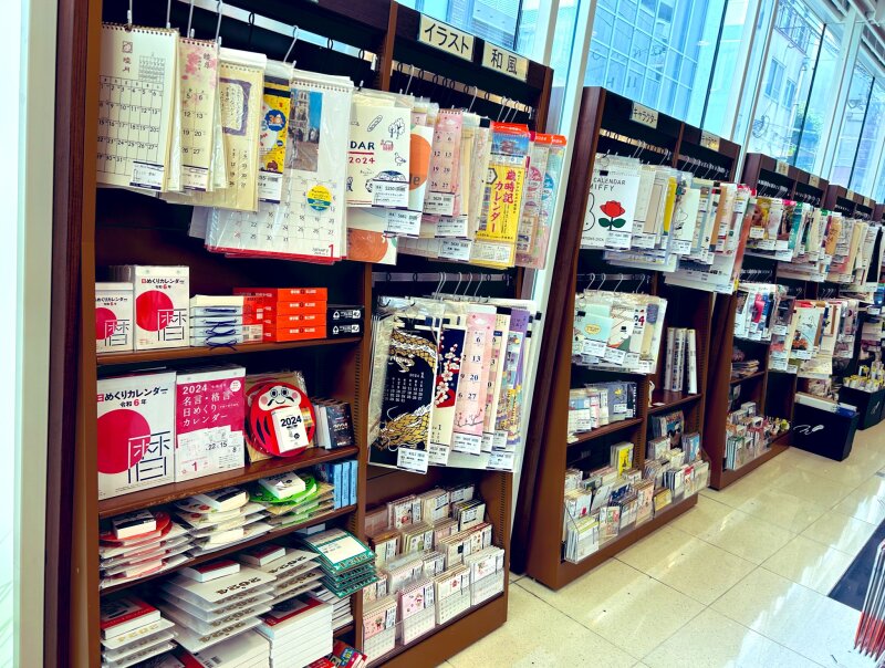 2024年度のカレンダー販売開始しました。毎年定番のシンプルなカレンダーから、日めくり、卓上、お花、風景、アート、キャラクター、和風のものなど幅広く取り揃えております。お気に入りのカレンダーが見付かること間違いなしの品揃えです。人気商品はなくなり次第終了のものもあるため、ぜひお早めにお目当ての商品を探しに来てください。ご来店お待ちしております。