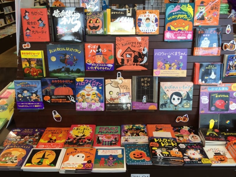 子どもたちに大人気のおばけやかぼちゃの絵本が勢揃い。店舗入口のフェアコーナーで「ハロウィン絵本フェア」を開催中です。小さなお子様向けのしかけ絵本から、ハロウィンとは何かを紹介する内容の絵本まで、多数の絵本をご準備しております。少し不気味でかわいい絵本の数々をどうぞ御覧下さい。この時期だけのポストカードの特典付きの絵本もありますよ。