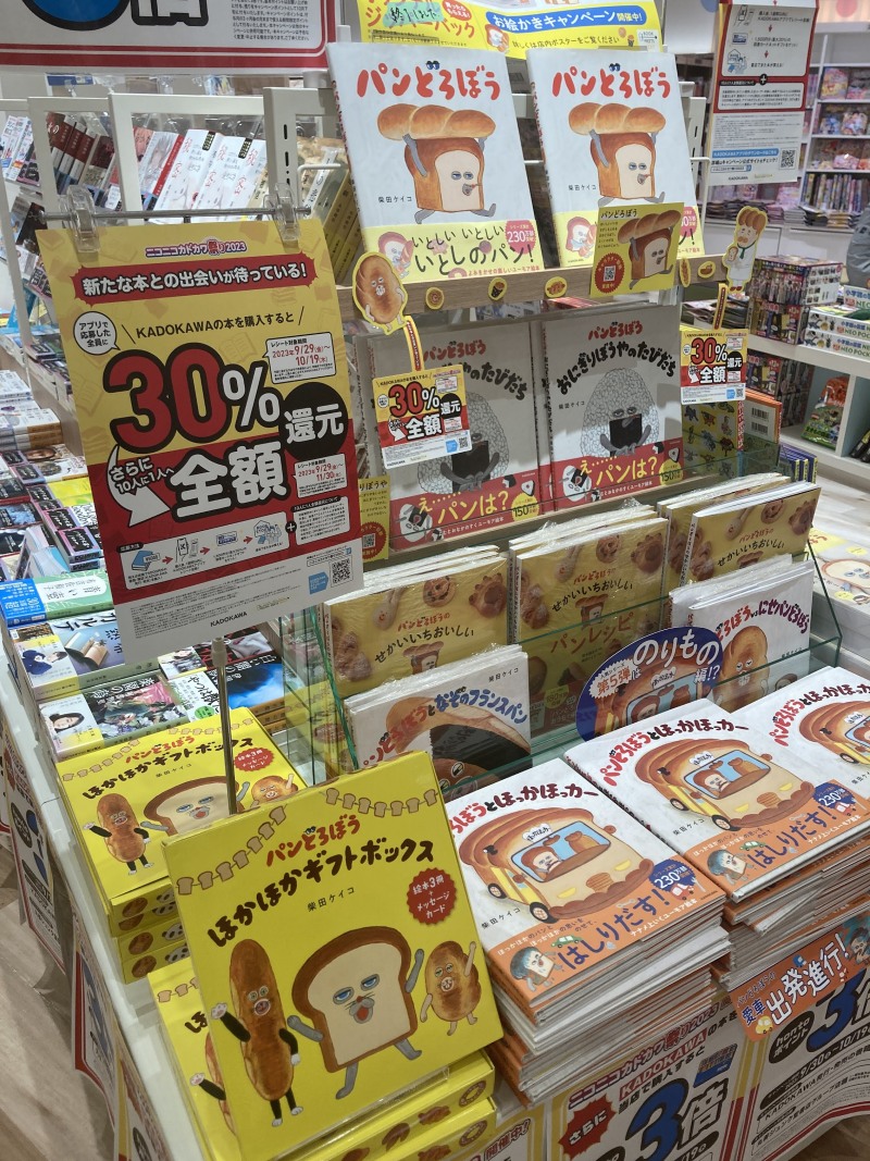 毎年恒例のニコニコカドカワ祭りが開催いたしました。KADOKAWA書籍をご購入した際のレシートを専用アプリで投稿して頂くとなんと30%還元されます。KADOKAWAの気になっていたコミック、読んでみたかったあの小説、プレゼントしたい絵本、購入されるなら今が絶好のチャンスです。ぜひこの機会に書店に足をお運び下さい。
