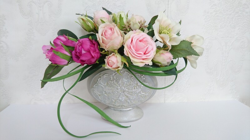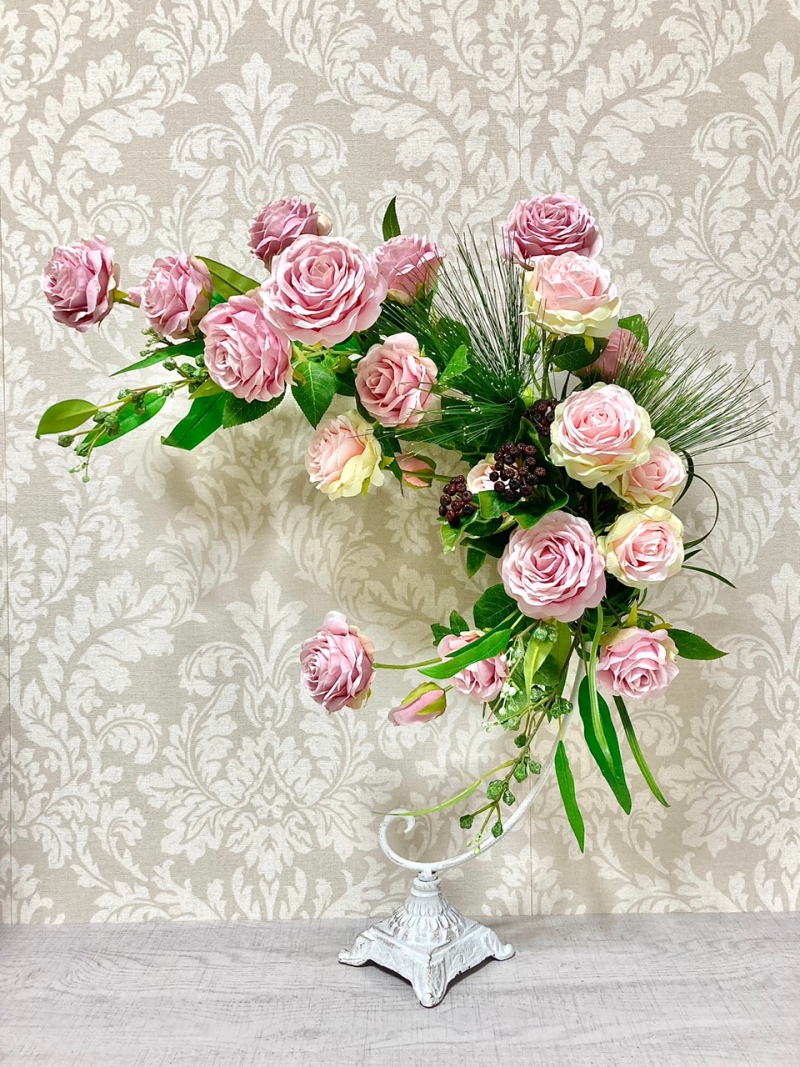上質な布花を使用し、優しい色合いとオリジナル性溢れるデザインにこだわったアレンジメント作品を制作しています。生花の代わりの域を超えたアーティフィシャルフラワーの美しさ・芸術性を活かしたインテリア装飾品をご紹介いたします。1Fイベントスペース