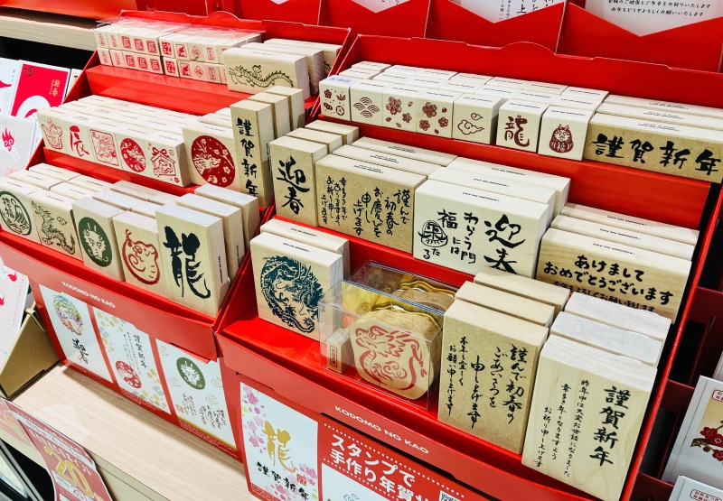 2024年は辰年!お正月に向け、当店では年賀用品を販売中。お年玉付き年賀はがきは、目上の方にもお送りいただけるフォーマルから、オシャレで可愛いカジュアルまで、豊富なデザインの中からお選びいただけます。そのほか、年賀スタンプやお年玉ぽち袋も販売中です。2024年も昇り龍のように活気にあふれる良い1年になりますように。