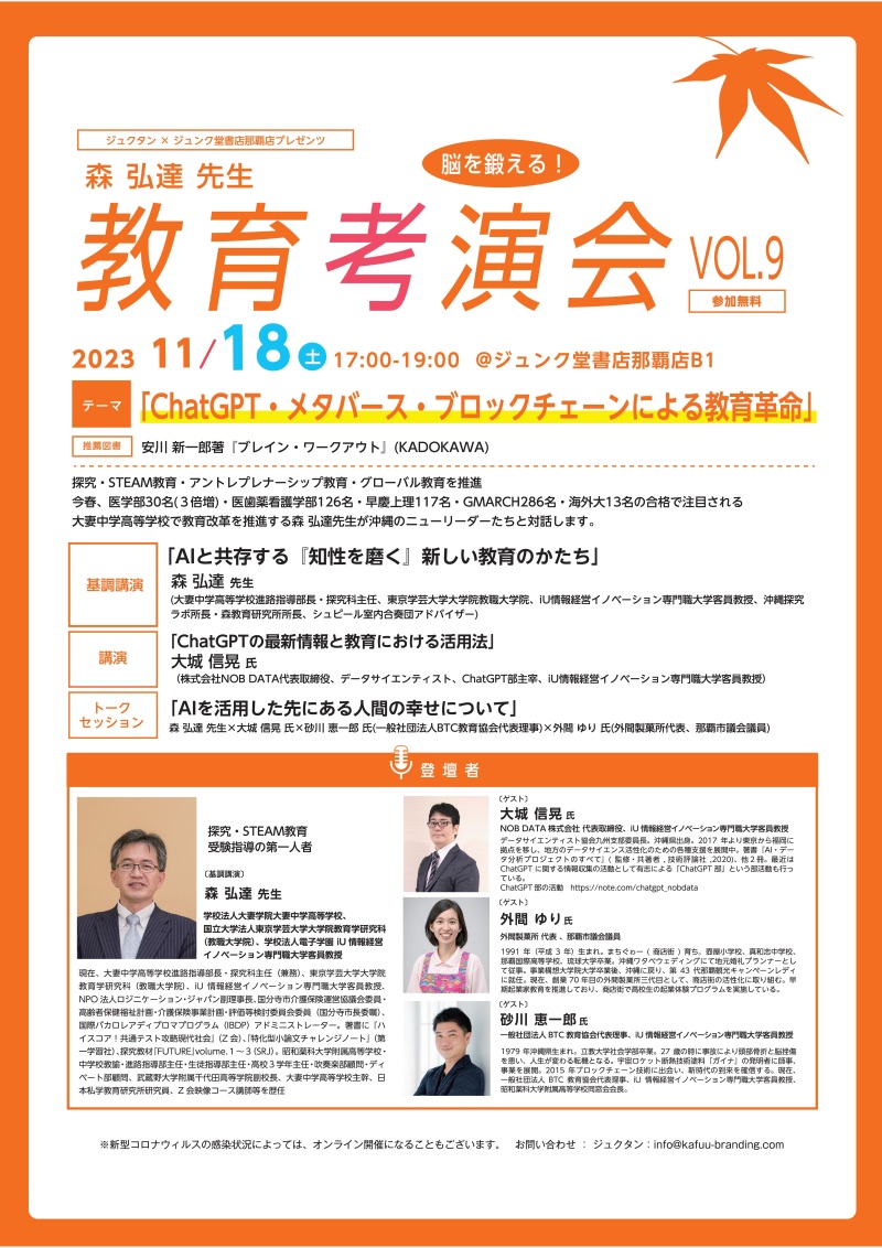 ジュクタン × ジュンク堂書店那覇店プレゼンツ 森弘達先生 教育考演会 VOL.9