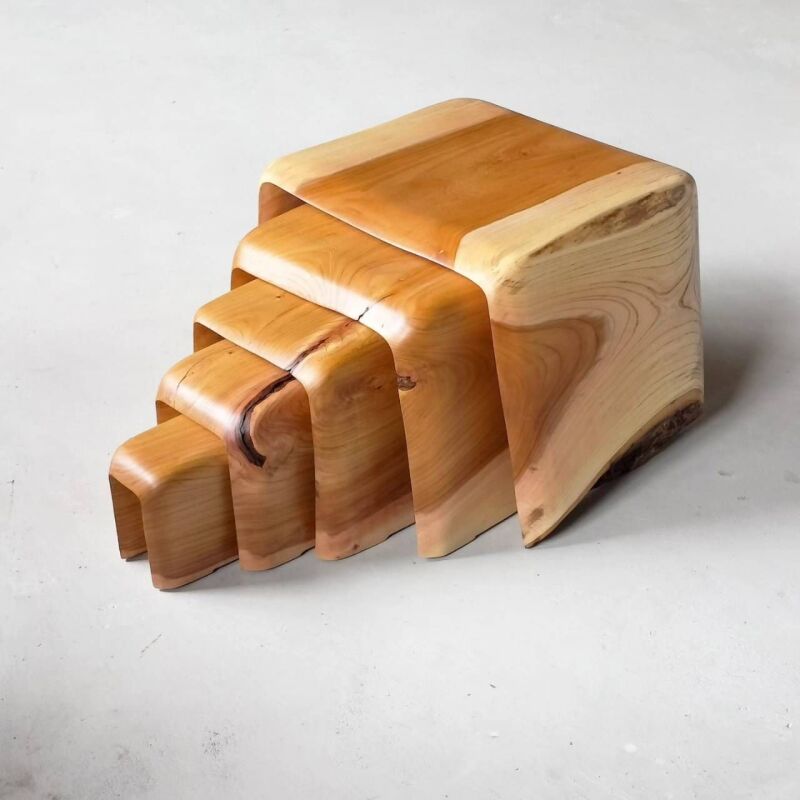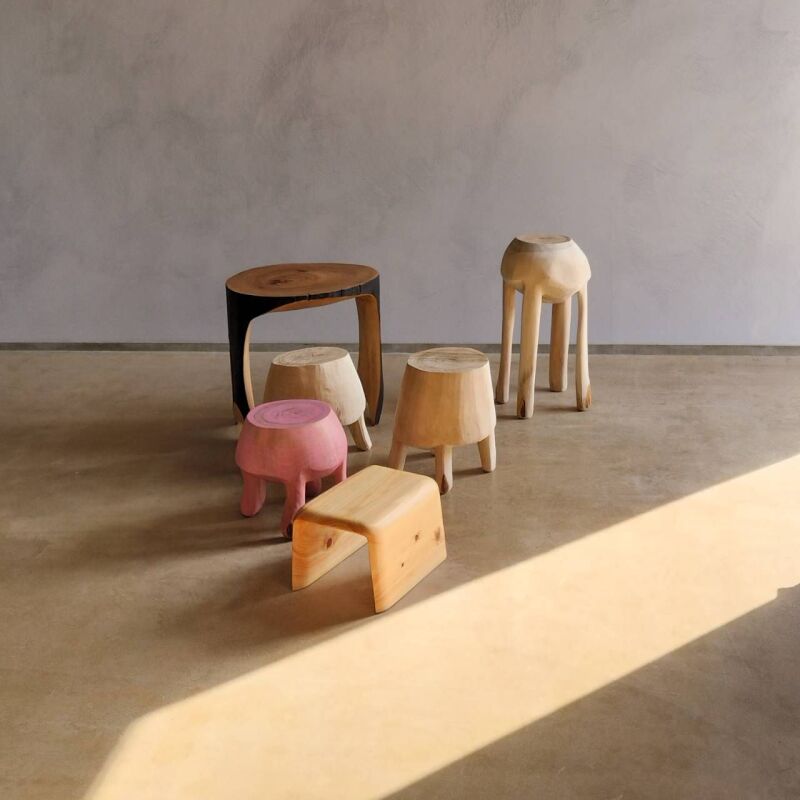 山口県産の上質な木材を贅沢に使った彫刻家具やオブジェを制作しています。強い存在感を持ちながらも他のインテリアと馴染むように、一本の木から丁寧に削り出して造形しておりますので、ぜひ手に取っていただきながらゆっくりとご高覧ください。1Fイベントスペース