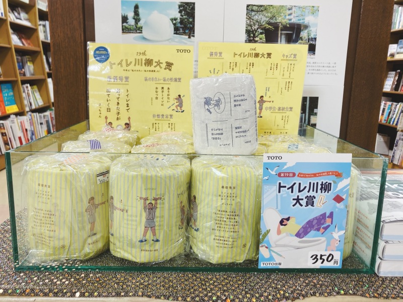 今年も 11月10日【トイレの日】に発売されました!トイレにまつわる川柳を広く募集した『第19回 トイレ川柳大賞』のトイレットペーパー型作品集。わずか17音で心がホッと、あるいはじんわり、時にはウーンと考えさせられる、ひとりのトイレの時間を優しく包み込んでくれること間違いなしの一品です。販売価格は1個350円。同じくTOTO出版の『The Tokyo Toilet―Shibuya Tokyo Japan』のパネル展と共に展開しております。