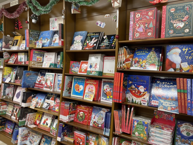 児童書売場がいつにも増してキラキラとかわいく彩られています。クリスマス絵本のコーナーです。寒い季節の絵本なのに、眺めているだけでなんだかあたたかい気持ちになってきますね。今年のすてきな思い出のひとつに、本を贈ってみるのはいかがでしょうか。新刊・定番、たくさんそろえてお待ちしております。