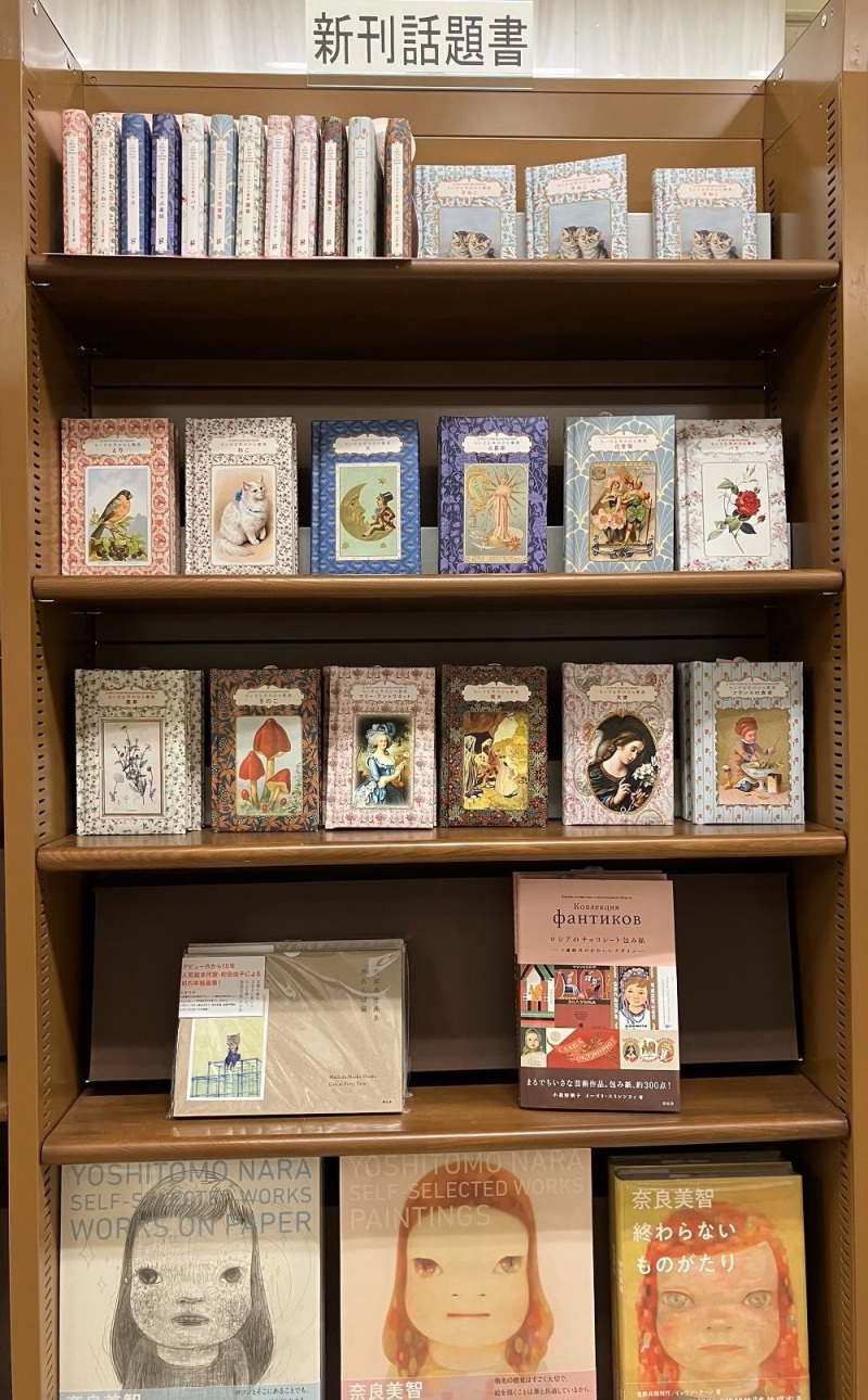 「芸術書」と聞くと専門的で難しそうに聞こえますよね。難しく考えず、一度「触れ」あってほしいフェアが地下1階話題書の棚で開催中です。グラフィック社のちいさな手のひら事典を中心とした芸術書のこちらのフェア。是非とも手に取って触れて欲しい、と言うのもこちらの本、ハードカバーがふっくらとしているんです。そして「小口」と呼ばれる側面のこのキラキラ。手の込んだこれらの装丁はまさに芸術書ならではです。どうぞ気になるものの表紙を開いてみて下さい。皆様の本棚に1冊、この素敵な本を迎えてみてはいかがでしょうか。