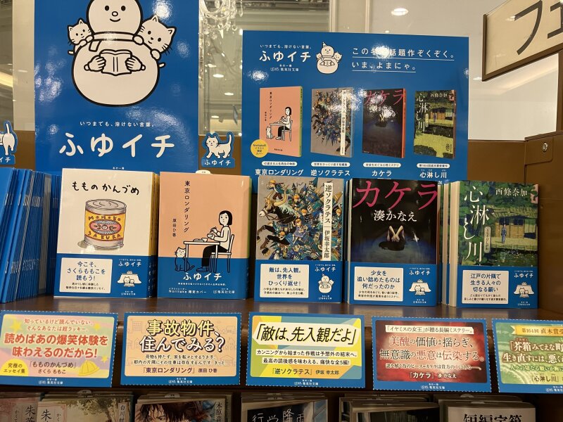 話題作が勢揃いの集英社文庫の冬フェアを開催中です。テーマは「いつまでも、溶けない言葉。」原田ひ香先生『東京ロンダリング』や伊坂幸太郎先生の『逆ソクラテス』など30点のラインナップになります。原田ひ香先生の『東京ロンダリング』はNoritake氏のイラスト限定カバーになっております。あなたのこころに響く一言を残す一冊との出会いがあるかもしれません。