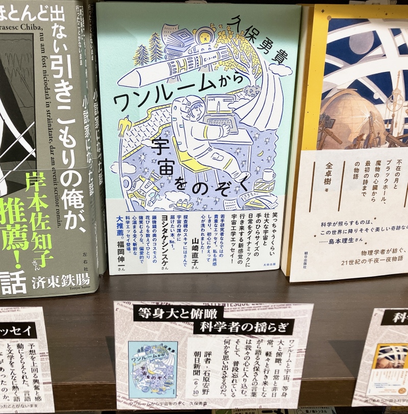 さまざまな出来事があった2023年。新聞の書評ではどのような書籍が紹介されてきたのかを、朝日出版社・太田出版・共和国・ころから・左右社・晶文社・青土社・トランスビュー・フィルムアート社・平凡社・みすず書房・ライツ社(五十音順)12社合同で振り返ります。出版社がイチオシするおすすめタイトルが揃っています。見かけた事があるけれどまだ読んでいなかったなという書目、この機会に手にとってみませんか。文芸書コーナー前のフェア棚にて展開しています。担当のおすすめは『ワンルームから宇宙をのぞく』宇宙のなかに、日常がある。日常のなかに、宇宙がある。笑っちゃうくらい壮大な宇宙と手のひらサイズの日常をダイナミックに行き来する、久保勇貴さんによる新感覚の宇宙工学エッセイです。