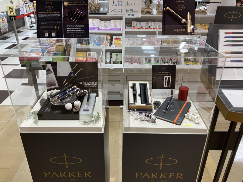 店前スペースにて、パーカー・ウォーターマンフェアを開催中です。矢羽クリップのデザインで有名なイギリスのメーカー「パーカー」、エレガンスを体現する「ウォーターマン」。どちらもビジネスシーンはもちろん、どの場面でも美しいデザインが際立ちます。ギフトとしても人気が高いパーカー・ウォーターマン、豊富なアイテムからぜひお選びください。本革ペンシース付のBOX(有料)もございます。ペンとあわせてプレゼントにいかがでしょうか。
