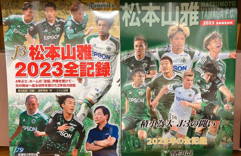 松本山雅の一年間が詰まった信濃毎日新聞社の『松本山雅2023全記録』と市民タイムスの『松本山雅 積小為大 J3の闘い 2023年の全記録』がそれぞれ発売中でございます。