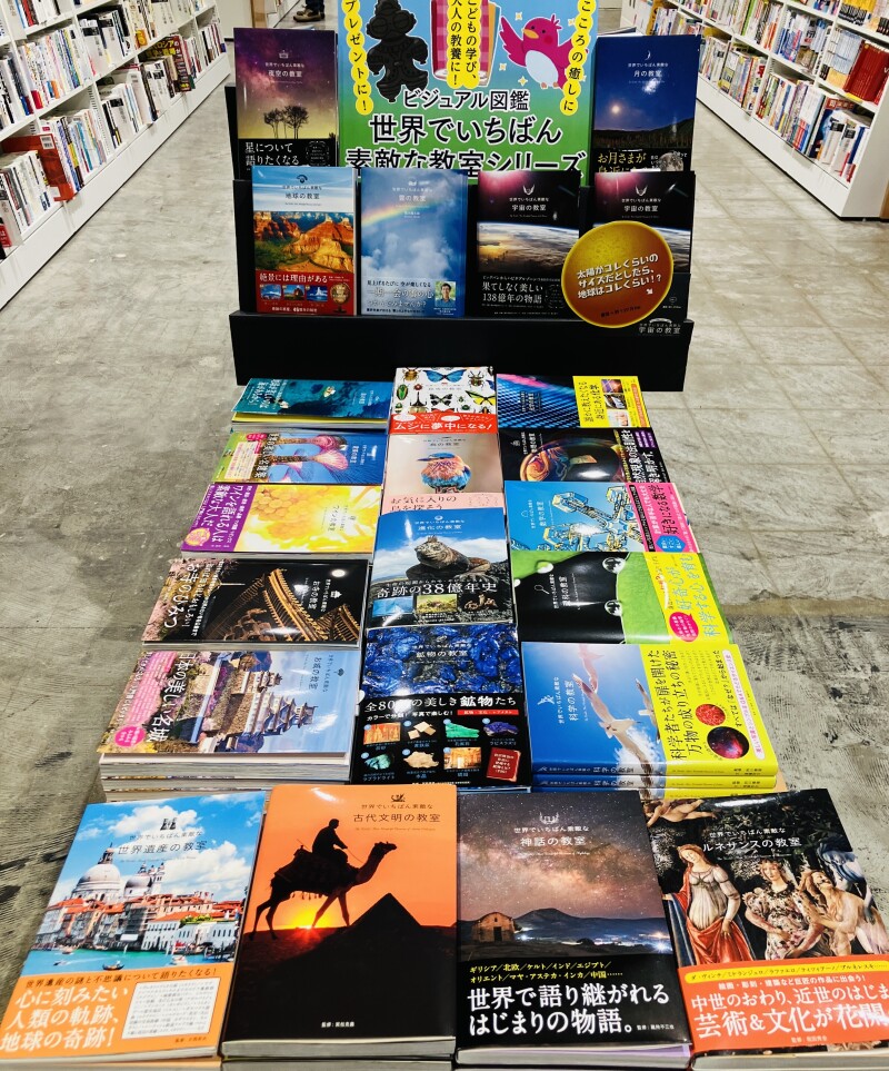 こころの癒しに、こどもの学びに、大人の教養に。美しい写真を眺めるうちに、さまざまな知識が身につくビジュアル図鑑。世界遺産はいくつあるの?どうやって決まるの?『世界でいちばん素敵な世界遺産の教室』。世界でいちばん大きな鳥は?世界でいちばん速く飛ぶ鳥は?『世界でいちばん素敵な鳥の教室』。ジャンルは様々。人文話題書コーナーにて展開中