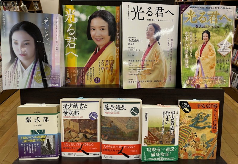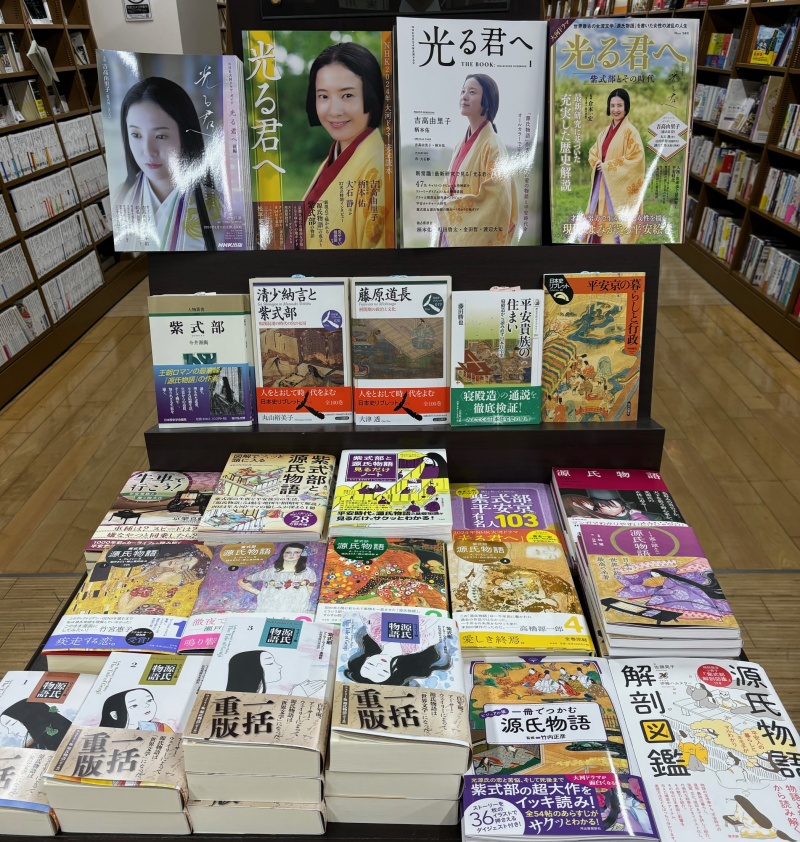 今年のNHK大河ドラマ『光る君へ』がはじまりました。ドラマをさらに楽しむための本を選び、人文書の棚・通路に面したテーブルにてフェアを開催中です。現代語訳の『源氏物語』や図解で源氏物語を理解する本、平安京の有名人を紹介する本など、読んで・眺めて役立つ本を選びました。1年間、大河ドラマ鑑賞の相棒となる1冊をぜひ店頭でご覧くださいませ。
