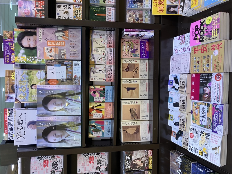 当店のレジ側入口話題書コーナーに、『光る君へ』をさらに紐解いてドラマと一緒に楽しめる関連書籍を集めました。大河ドラマの放映とともに、読書でも内容を味わいながら作品を楽しんでみてはいかがでしょうか。ぜひお手に取ってご覧くださいませ。
