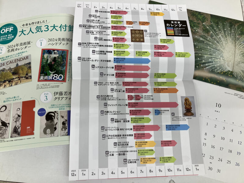 次々と飛び込んでくる「絵」の数々が、ページをめくる歓びとなった胸踊る1冊が登場しました。『日経おとなのOFF 2024年絶対見逃せない美術展』絶賛発売中です。国宝、重要文化財指定の作品から、大人気モネの初来日となる重要作品まで、家で読むのも楽しく、観に行くのも待ち遠しくなることでしょう。雑誌のお供により詳しい解説がついた画集や、歴史や時代背景がわかる書籍もいかがでしょうか。雑誌には3大付録(名画カレンダー・美術展ハンドブック・伊藤若冲クリアファイル)がついています。