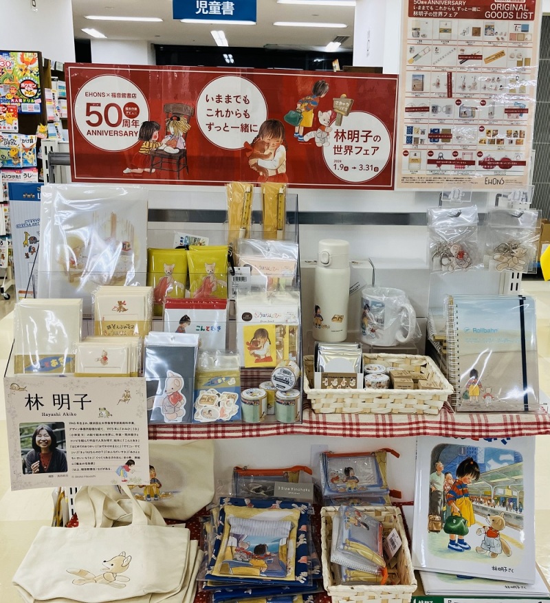 『はじめてのおつかい』『こんとあき』『おつきさまこんばんは』など、読んだことはなくてももしかしたら作品名を耳にしたことがあるかもしれません。児童書売り場にて絵本作家・林明子の世界フェアを開催しております。可愛らしい『こんとあき』の雑貨を取り揃えております。学校で、オフィスで、ちょっとしたプレゼントにも喜ばれるものがたくさん。絵本作家としてデビュー50周年の節目を迎え、長年愛された作品もずらり。懐かしい作品、これは知らなかったなぁという作品もあるかと思います。いままでも、これからも、ずっと一緒に、どうぞお手にとってご覧ください。