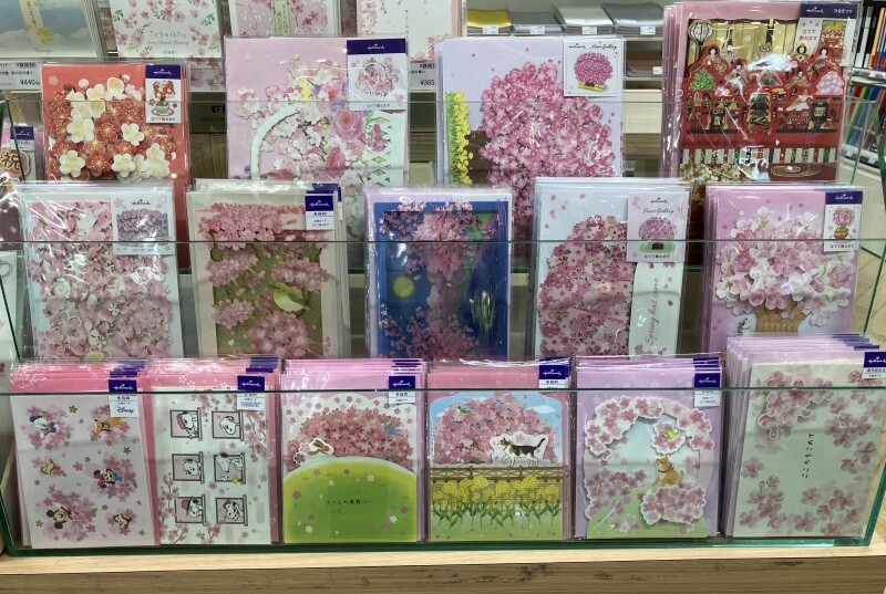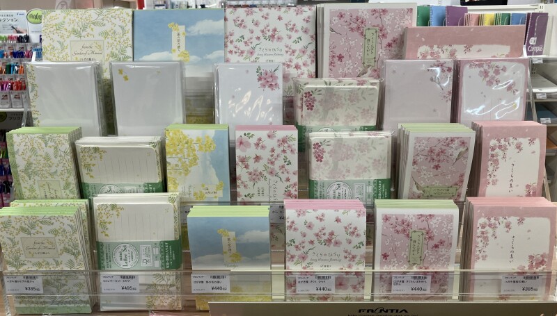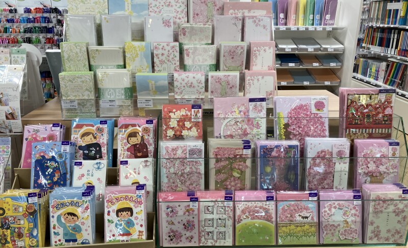 贈り物におすすめ!春柄のカードやレターが入荷しました。「フロンティア」のレターは、桜やミモザ・菜の花のきれいな絵柄で、便箋・封筒・一筆箋・はがき箋がラインナップ。「ホールマーク」の春カードは、桜や梅の花が美しいものや、入学・入園のものがございます。上りエスカレーター前の文具売場にて展開中です。ぜひお立ち寄りくださいませ。