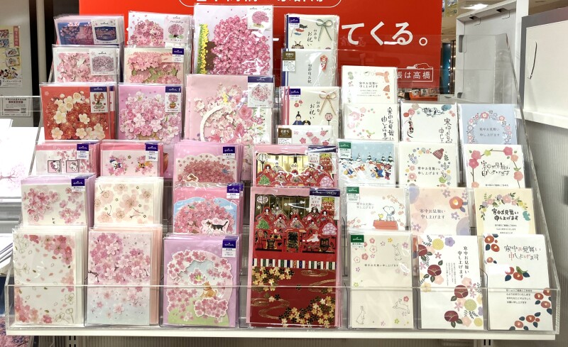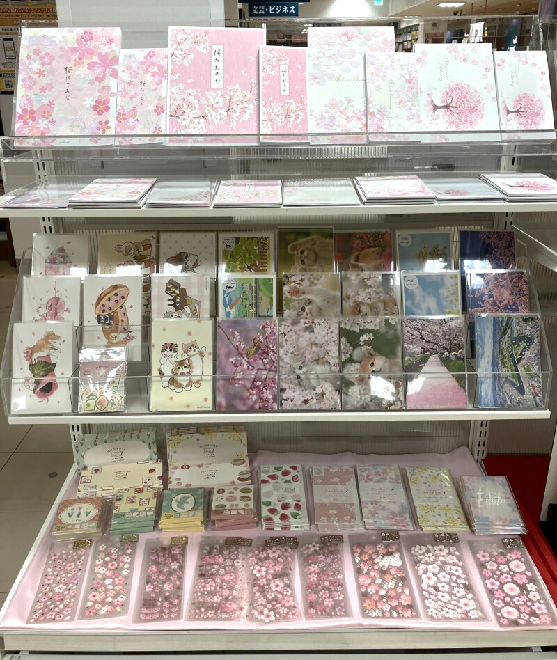 少しずつ春をイメージする事が増えてくる季節になってきたと思います。函館栄好堂でもレジ近くに桜満開のコーナーを作りました。