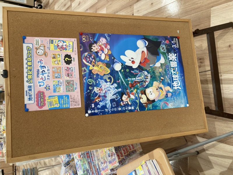 藤子・F・不二雄先生が生み出した国民的大人気漫画「ドラえもん」を原作としたアニメの最新劇場版『映画ドラえもん のび太の地球交響曲 (シンフォニー)』公開を記念し、2024年2月17日より書店フェアを開催中です。対象の「ドラえもん」関連書籍を購入した方に、特典として「ドラえもん ひとやすみステッカー 全6種」の中からランダムで1種をプレゼント。あたりは銀色に輝く特別仕様となっております。※特典はなくなり次第終了となります。