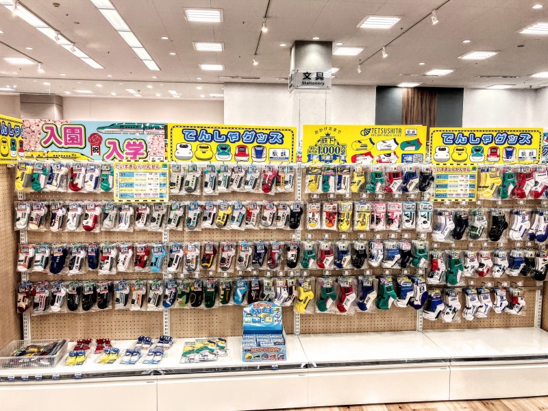 鉄道モチーフの靴下・略して『鉄下』や、お箸の『ハシ鉄』などなど、楽しい!かわいい!かっこいい!アイテムをたくさんそろえた駅鉄フェア開催中です。