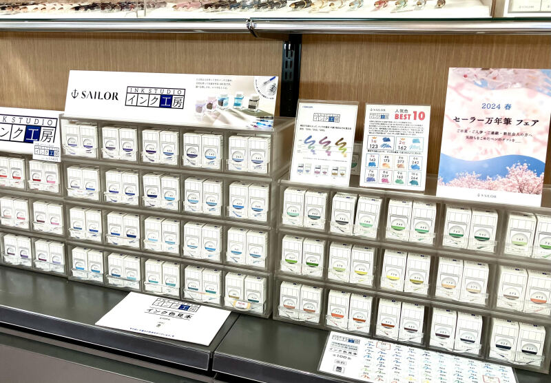 ご卒業、ご入学、ご進級、また新社会人の方へ、気持ちを込めたペンのギフトを贈られてはいかがですか。ギフトにおすすめのボールペン、シャープペン、万年筆をご用意いたしました。5500円(税込)以上のペンに黒か赤のペンケースをおつけいたします。会期中のみ、セーラー社が誇るカラーバリエーション豊かなインク工房「100色インク」も取り揃えております。万年筆、インクファンの方もこの機会にぜひご利用下さいませ。