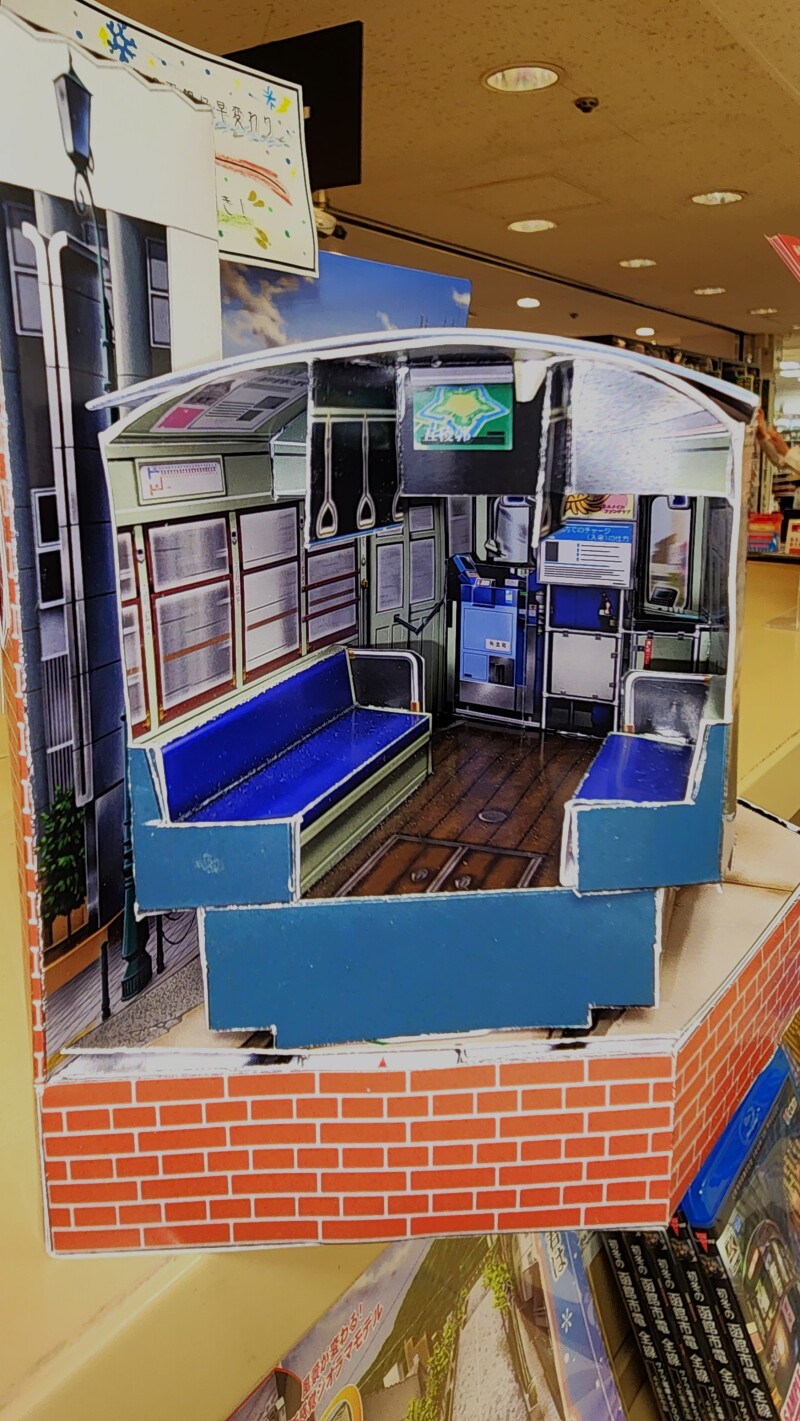 車両の後ろ側からは車両の中が見えるようになっており、なんと、中の床・座席・運賃表・車掌席など細かく表現されているため「そうそう!」と思わず頷いてしまうこと間違いなし。