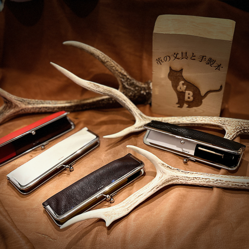 一期一会の革・ゴム・ステッチを組み合わせ、自分だけの本革ペンがまを作りましょう。主力の2~3本だけ…あるいはいっそ、とっておきの美軸を一本だけを大切に持ち運ぶ。がまぐち専用工具の使い方も丁寧にレクチャーする、人気のワークショップです。今回はワークショップで初めて、ジビエレザーも登場!
